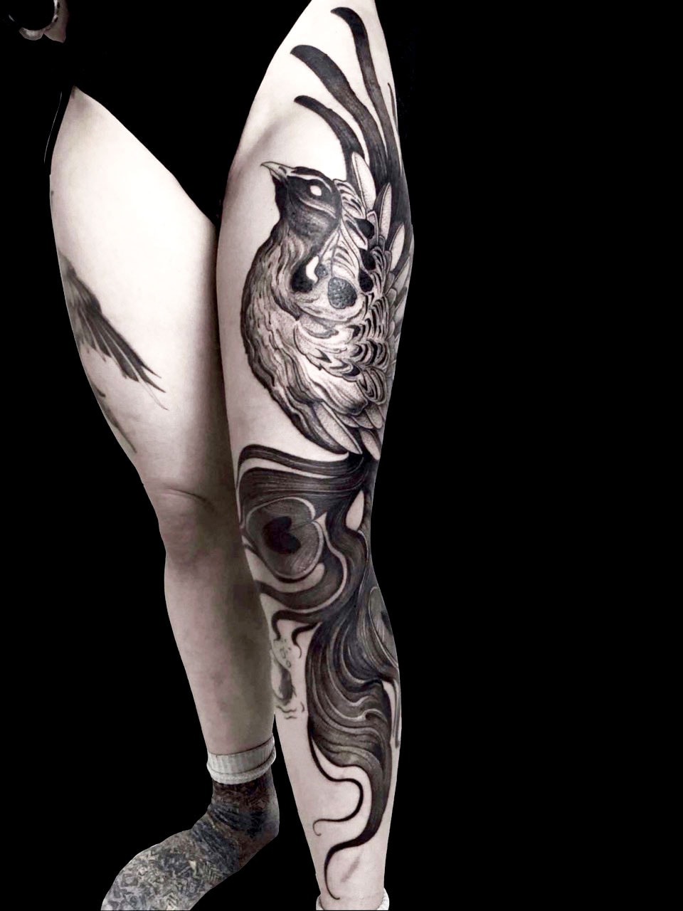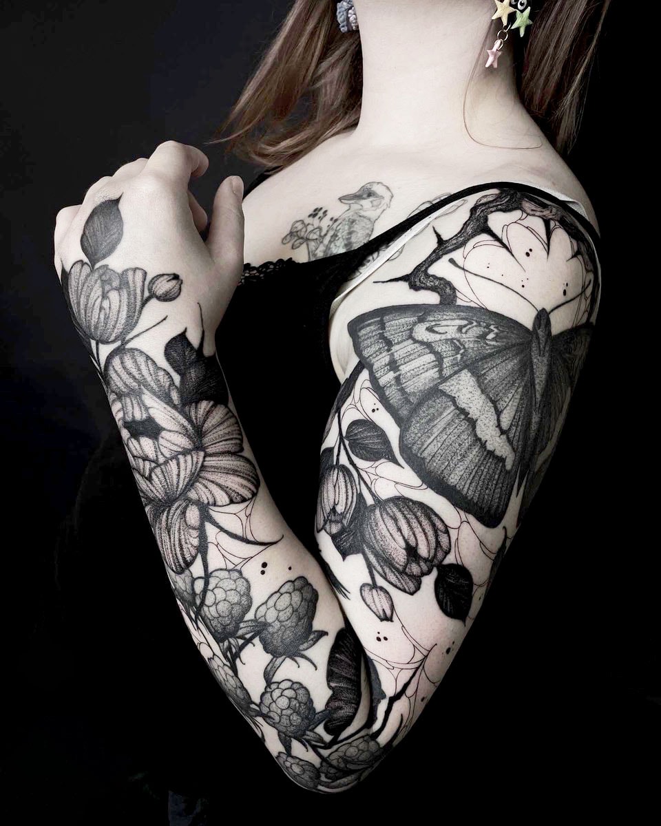 My tattoo style strongly reflects my personality. I mainly work with blackwork designs and nature-inspired motifs: floral elements, animals, forests, thorns — imagery that feels both calming and powerful to me. I love creating large-scale concepts and witnessing the physical and emotional transformation that a big tattoo can bring to a person. Most of the time I tattoo my own designs, but I truly enjoy to collaborate with my clients as well, and combine our ideas to create a concept together.