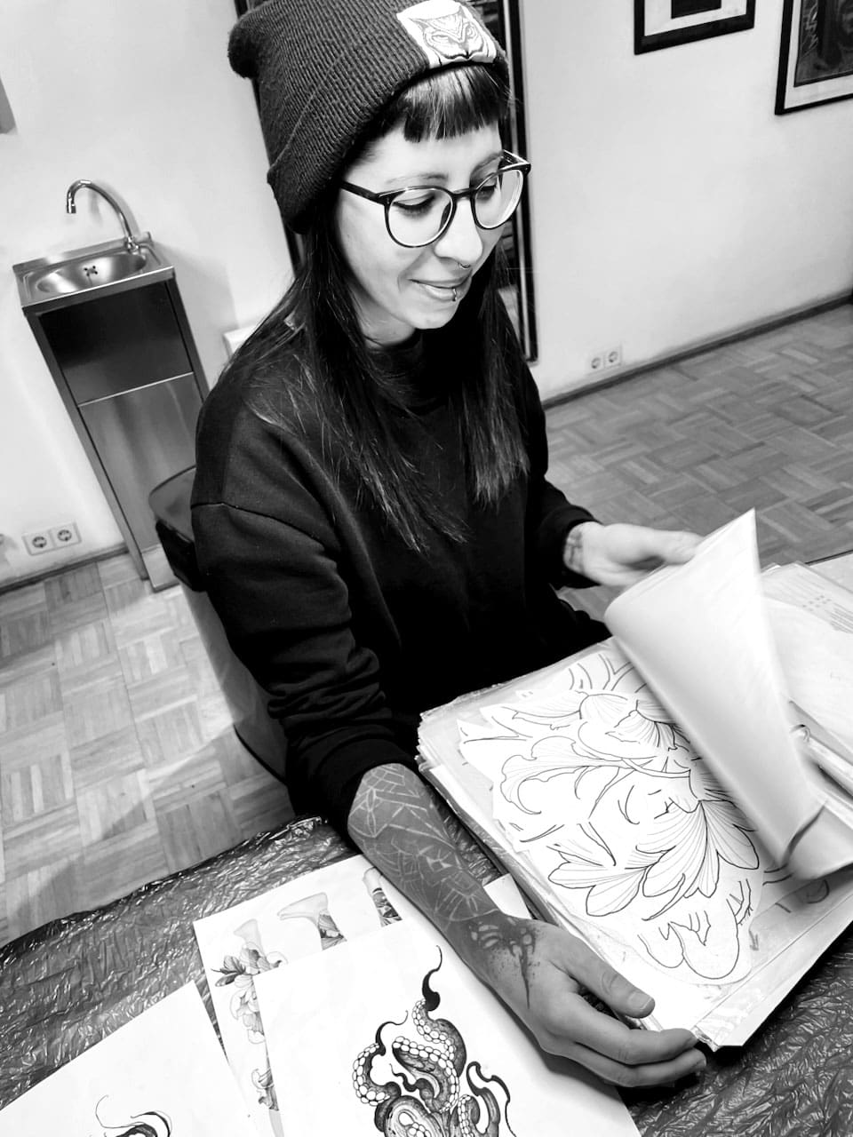 Meine Reise in die Tattoo-Welt begann sehr früh: Schon als Teenager wusste ich, dass dies mein Leben werden sollte. Mit 22 Jahren bin ich alleine nach Deutschland ausgewandert, um dieser großen Leidenschaft zu folgen. Im Laufe der Jahre habe ich in verschiedenen Studios sowohl als Resident Artist als auch als Gasttätowiererin gearbeitet. Dadurch durfte ich viele Kolleg*innen kennenlernen, die mich inspiriert haben und von denen ich viel über diese Kunst lernen konnte. Seit 2017 lebe ich in Berlin und bin seit Dezember 2025 Teil des Studios Blut & Eisen.